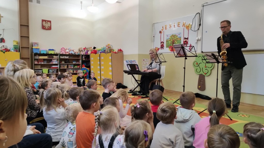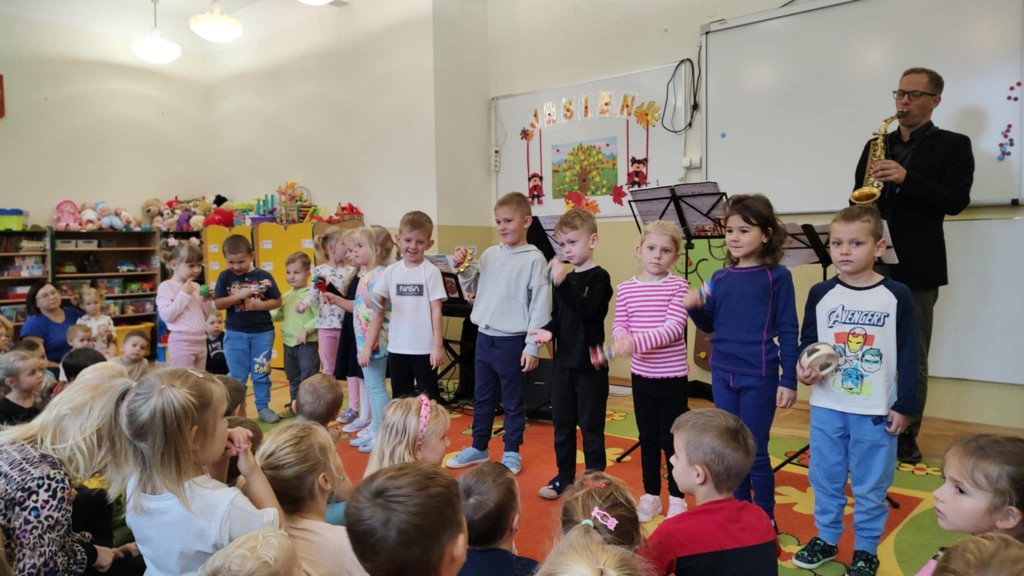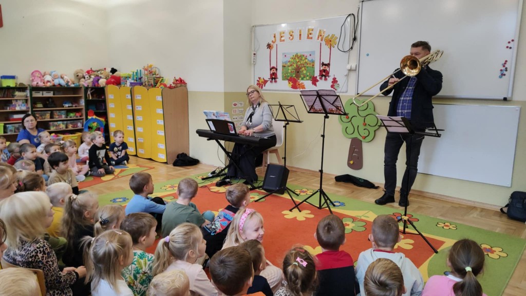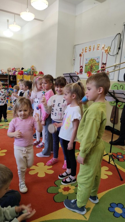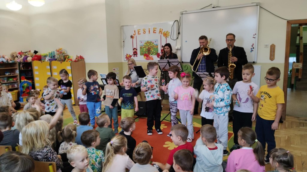 Przedszkolaki miały okazję zapoznać się z wyglądem oraz brzmieniem takich instrumentów muzycznych jak: pianino, puzon, saksofon oraz klarnet. Muzyka grana na żywo, wspólne muzykowanie i śpiew wywoływało dużo pozytywnych emocji i reakcji dzieci. Udział w koncercie dał dzieciom nowe możliwości odkrywania świata dźwięków i instrumentów. Była to również niecodzienna forma stymulacji zmysłów.