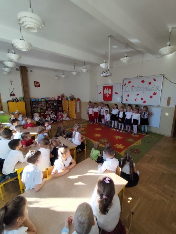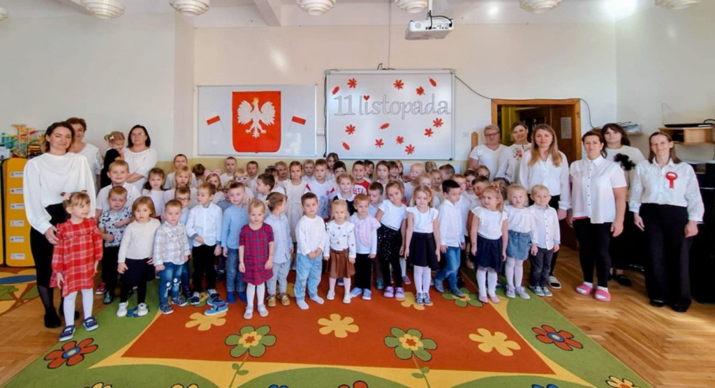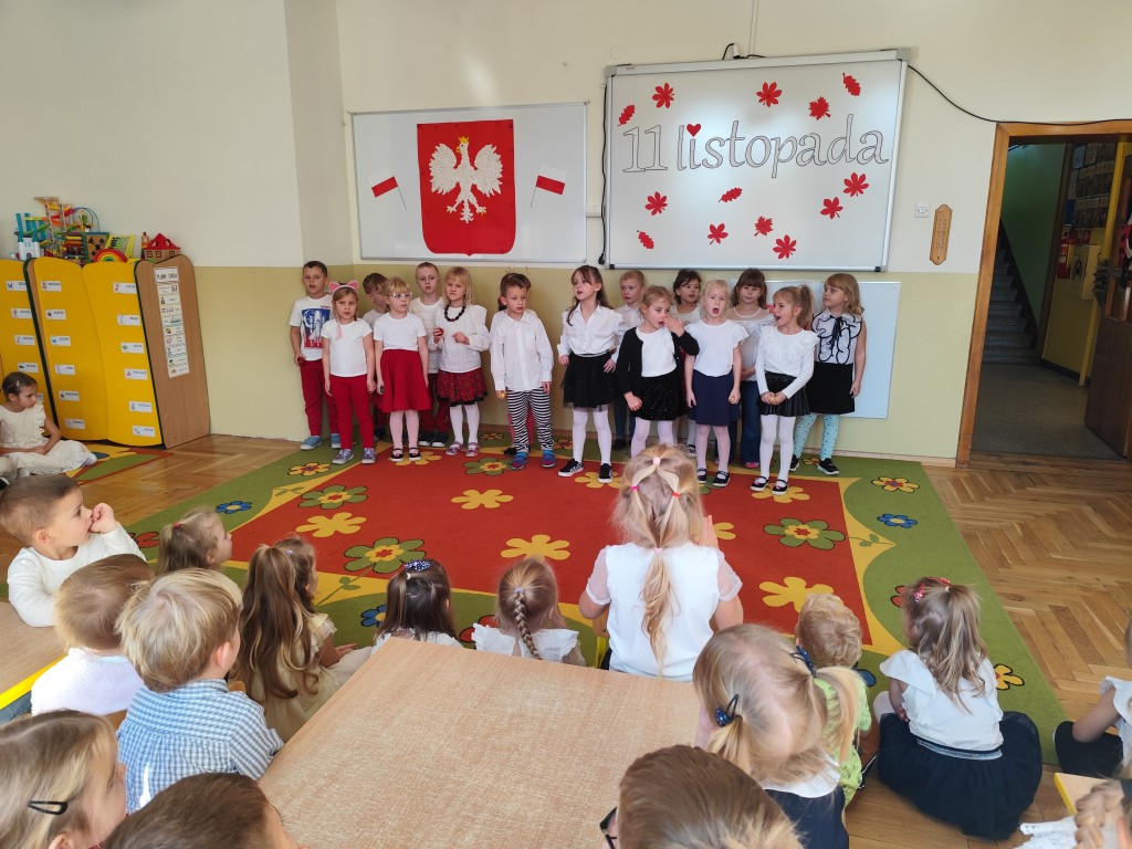 Dzieci, nauczyciele i pracownicy z naszego Przedszkola po raz ósmy włączyli się w akcję „Szkoła do hymnu”, wspólnie śpiewając „Mazurka Dąbrowskiego”.