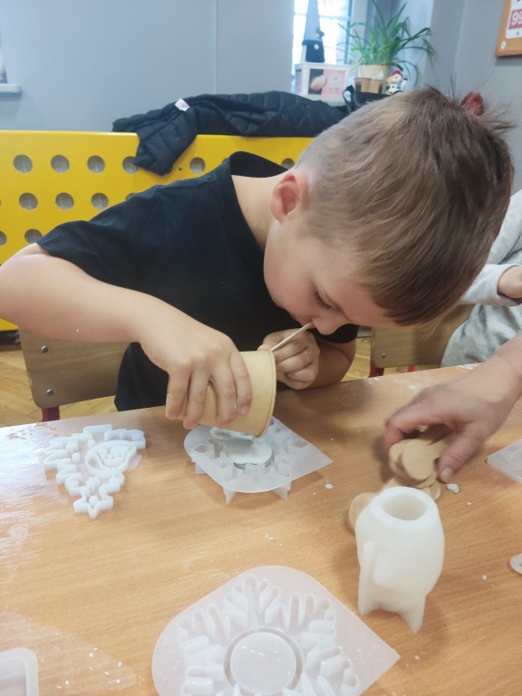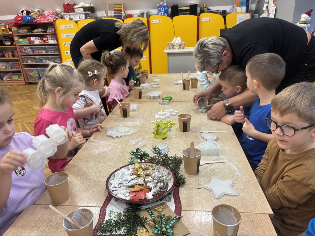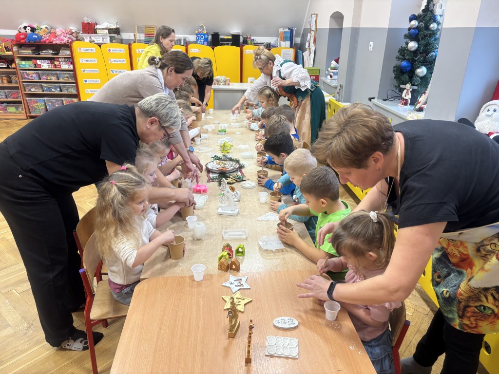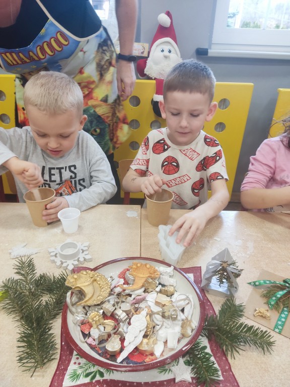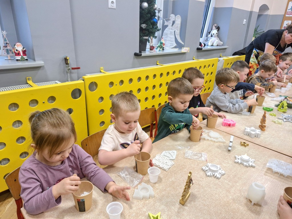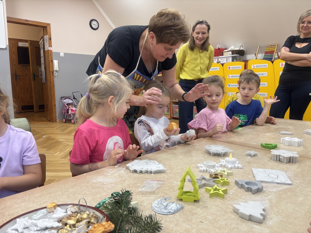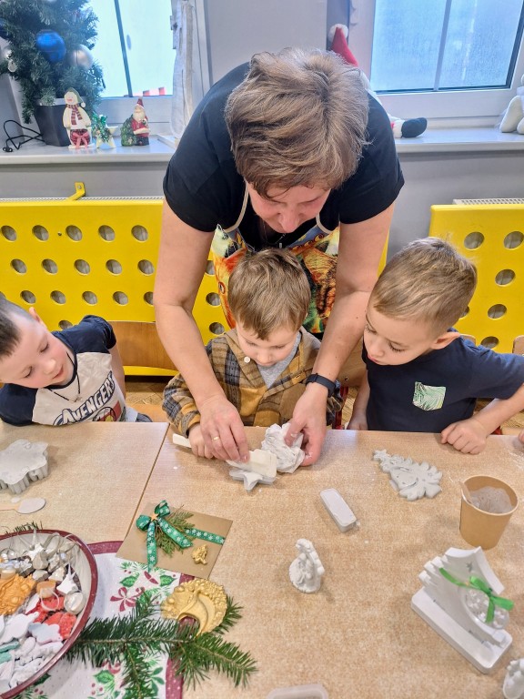 W naszym przedszkolu odbyły się wyjątkowe warsztaty świąteczne, które poprowadziły panie z naszego Koła Gospodyń. Dzieci miały okazję poznać tajniki odlewania gipsowych ozdób, a także samodzielnie wykonać świąteczną dekorację.