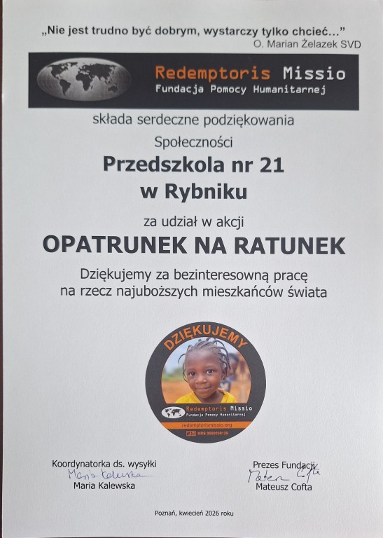 Cieszymy się, że razem możemy tworzyć dobro i nieść nadzieję. Dziękujemy za Wasze otwarte serce, wrażliwość i chęć niesienia pomocy.