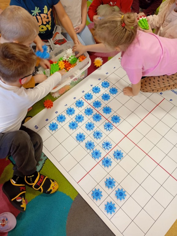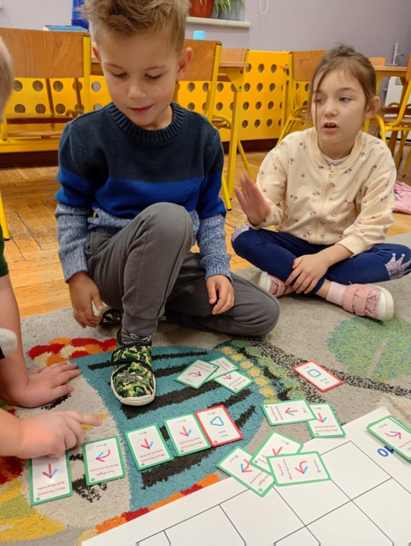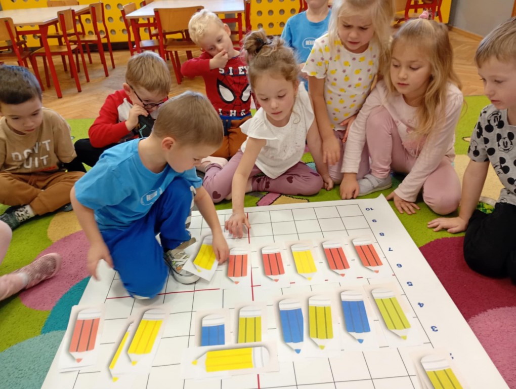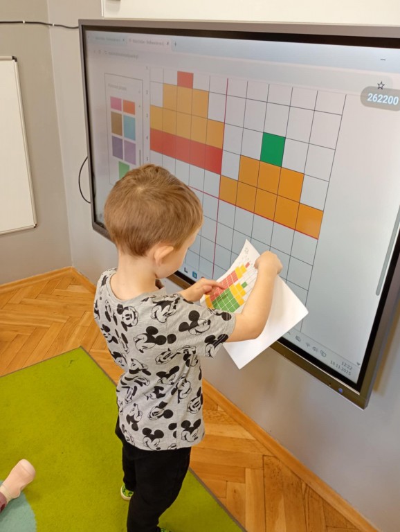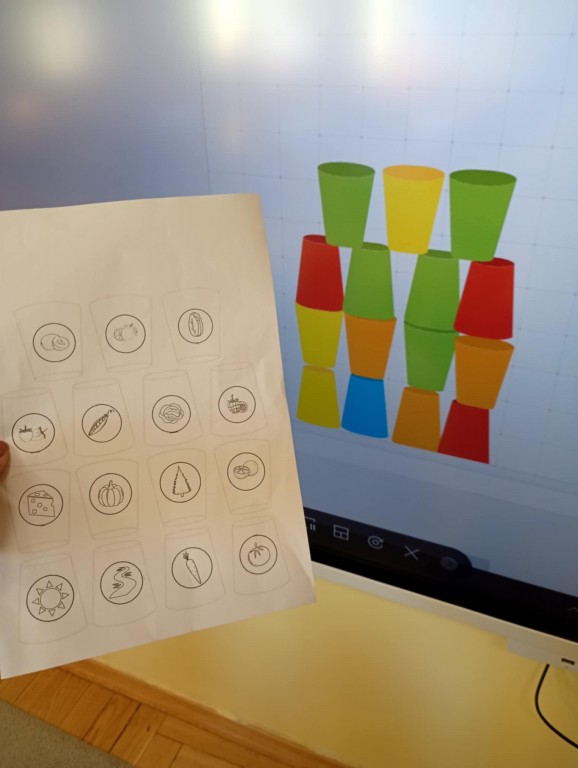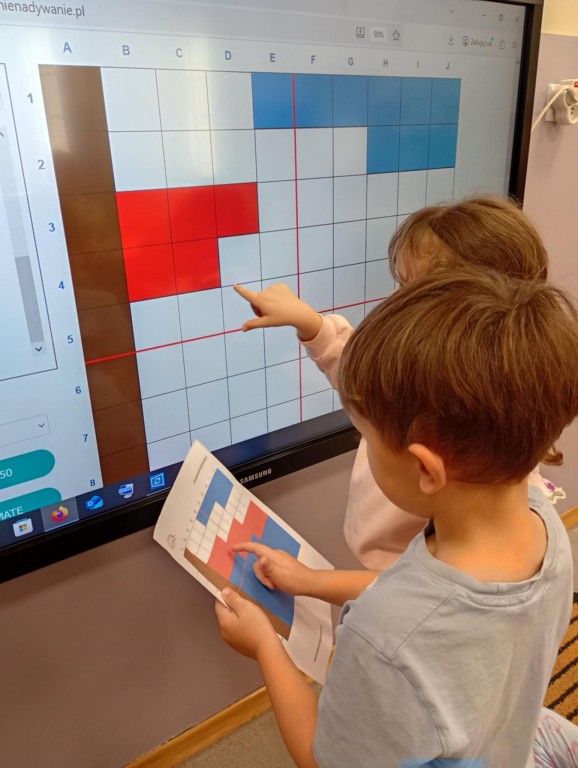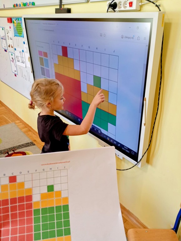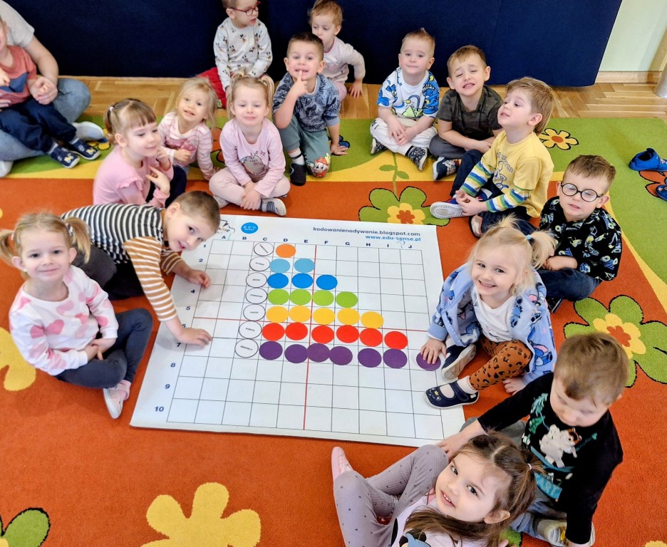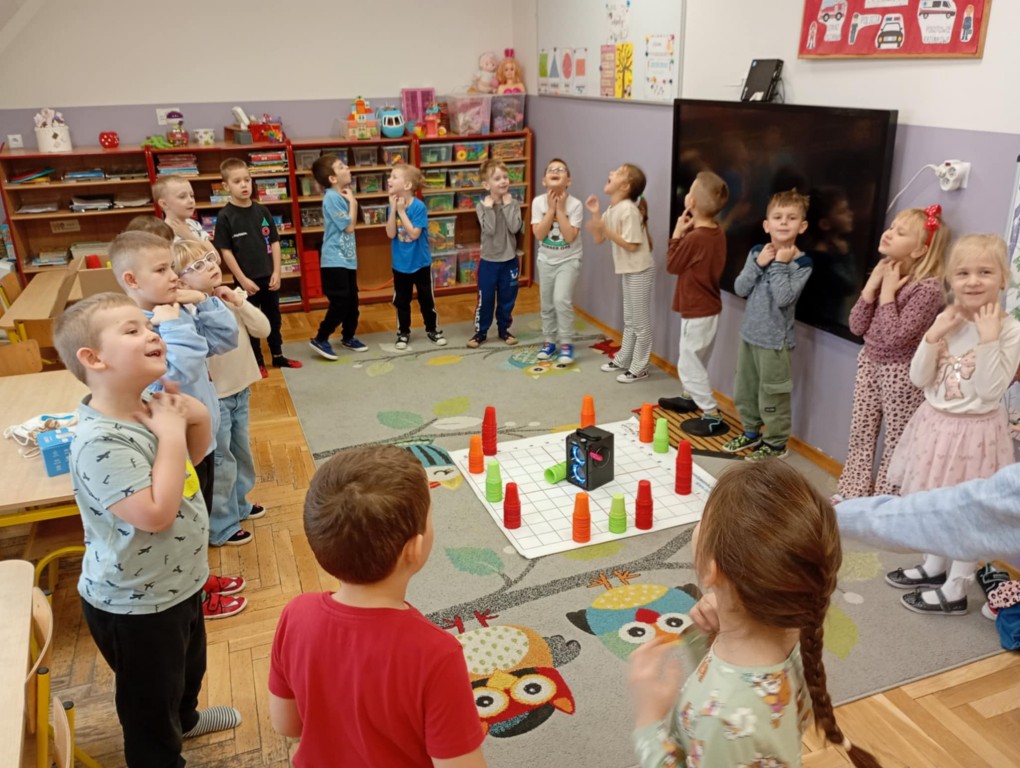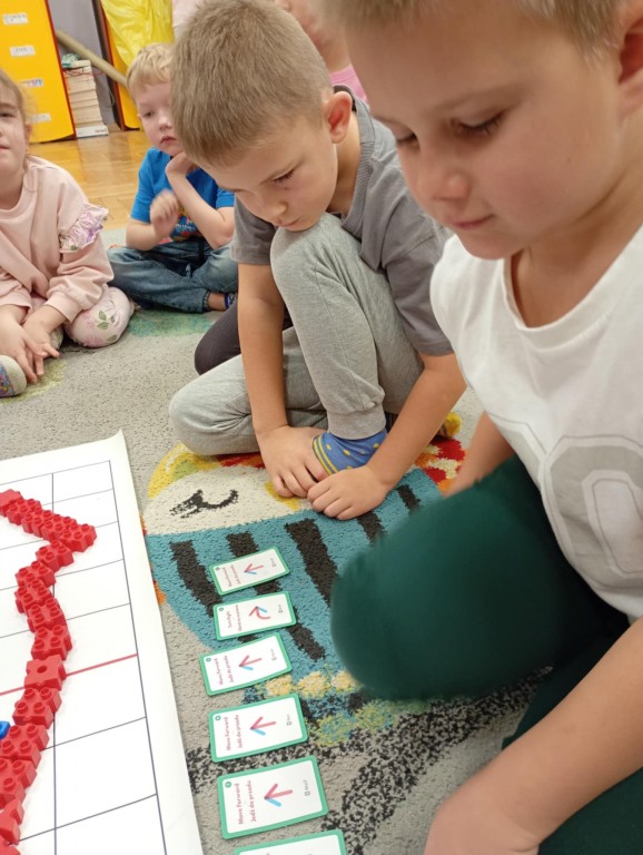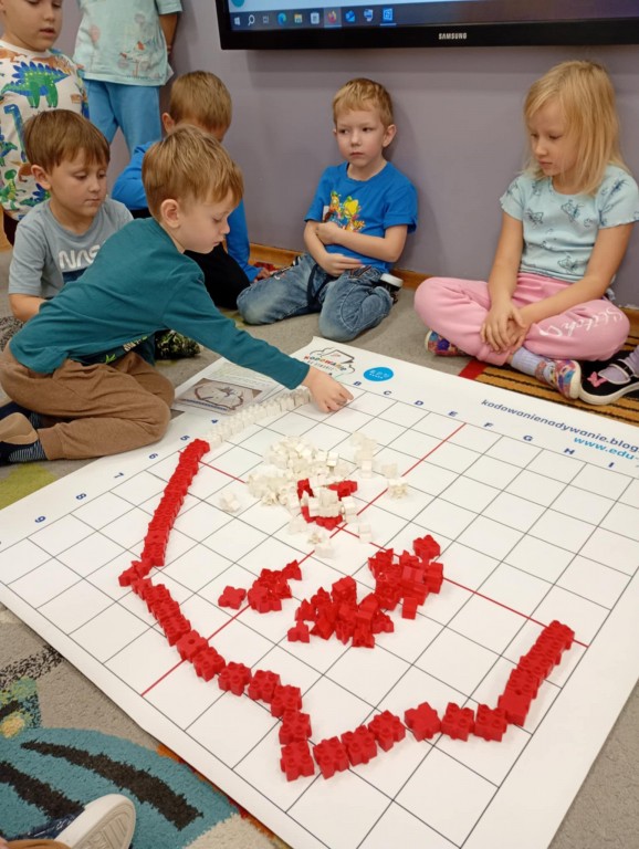 Podczas zajęć dzieci wykonały dyktando graficzne oraz ułożyły zakodowaną wieżę z kubków.