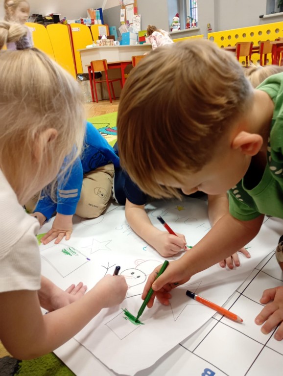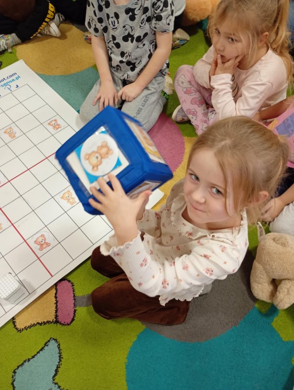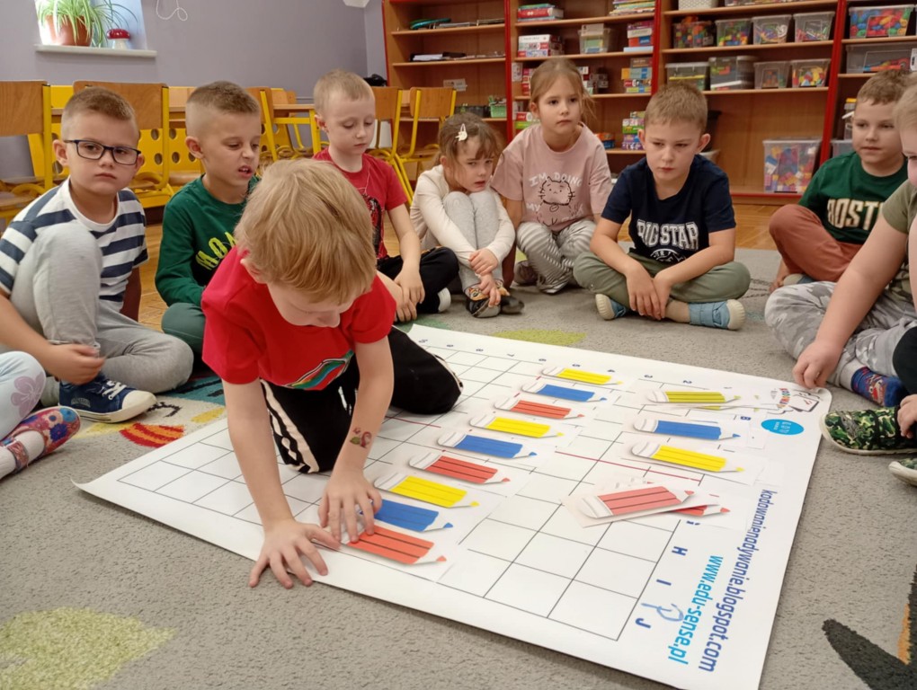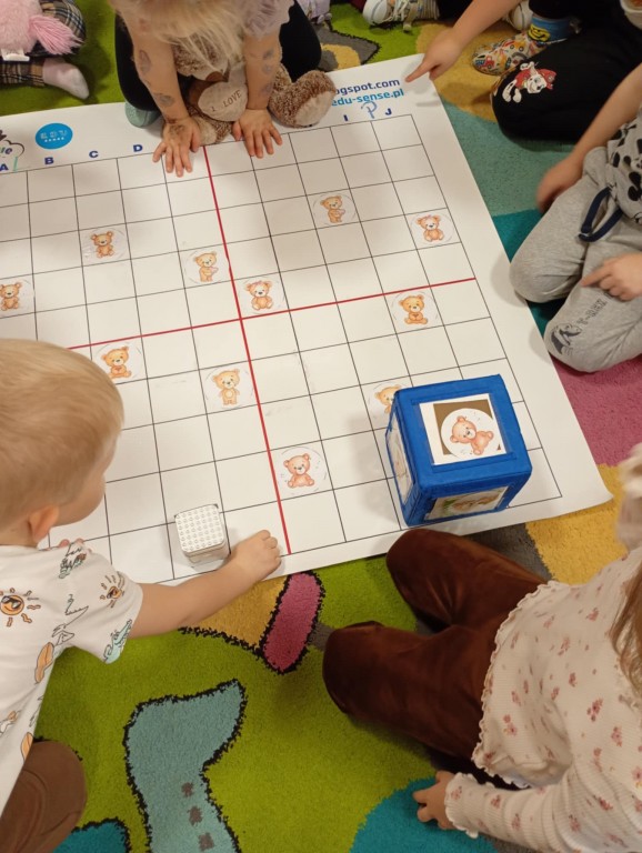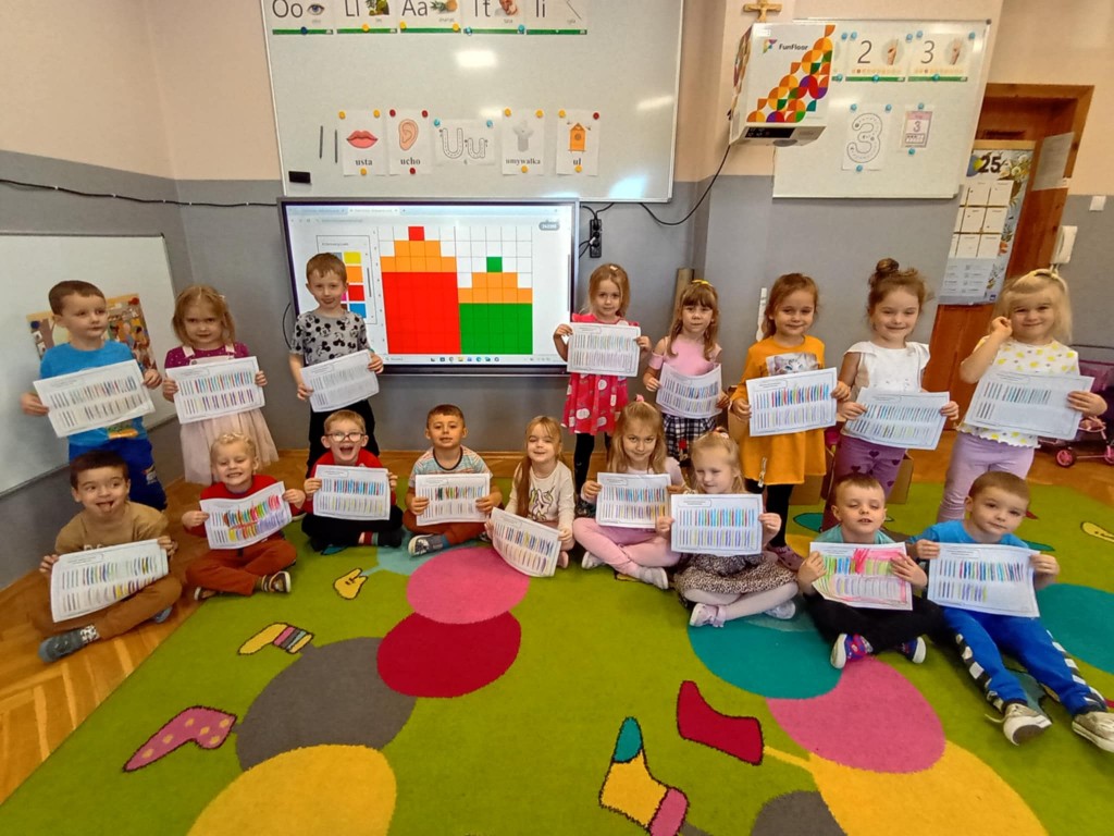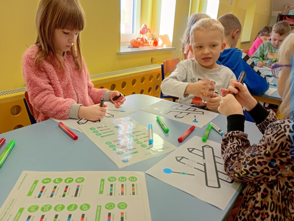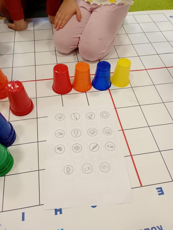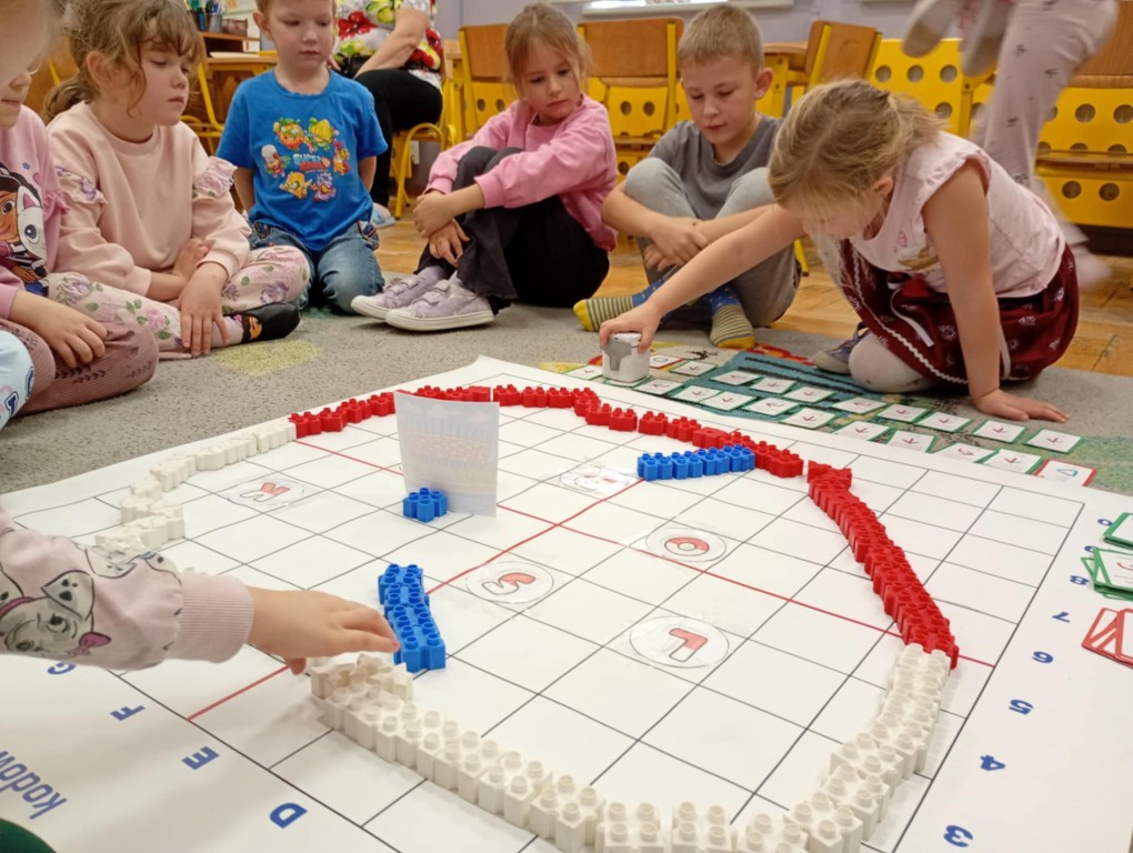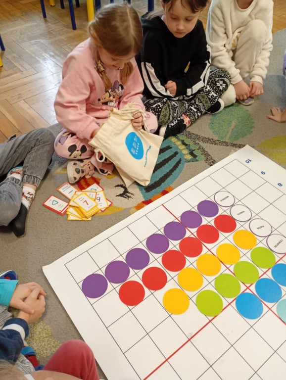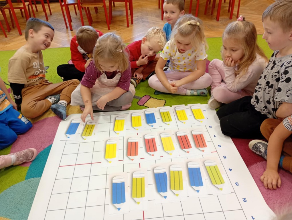 Podczas zajęć dzieci wykonały dyktando graficzne oraz ułożyły zakodowaną wieżę z kubków.