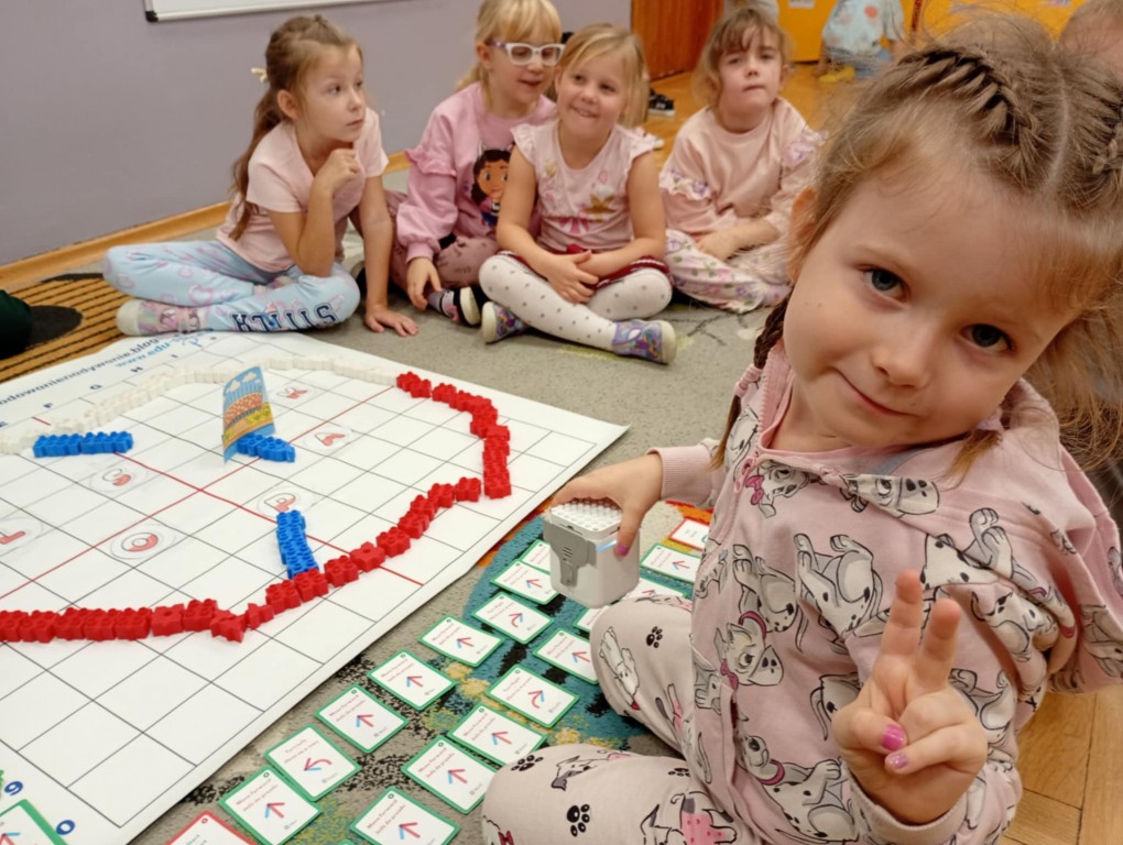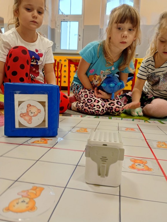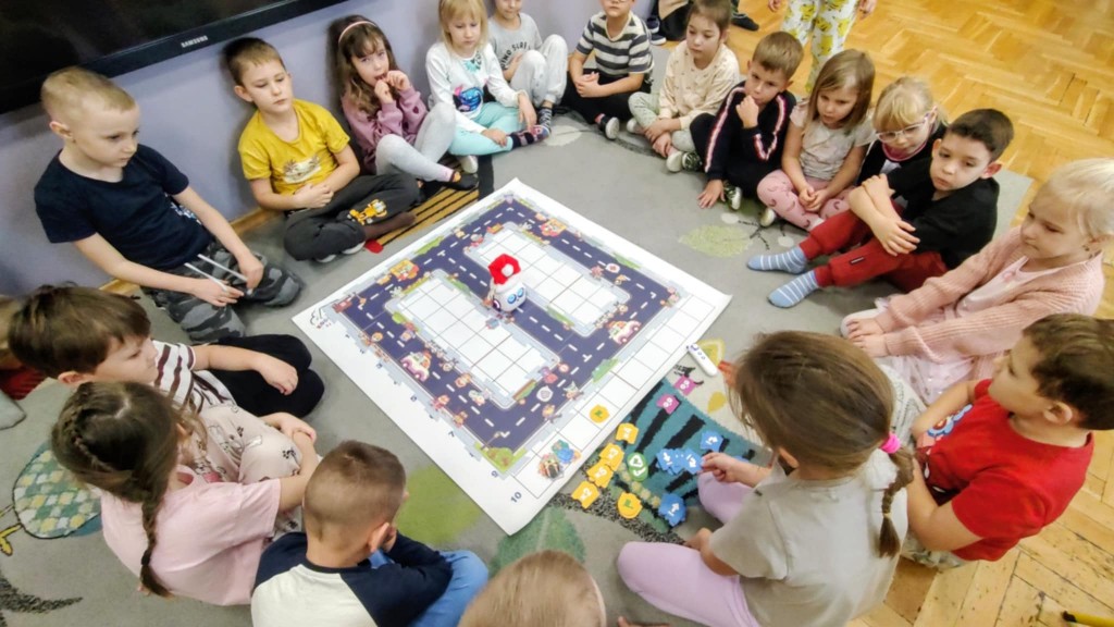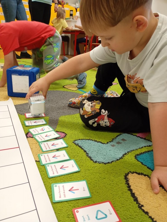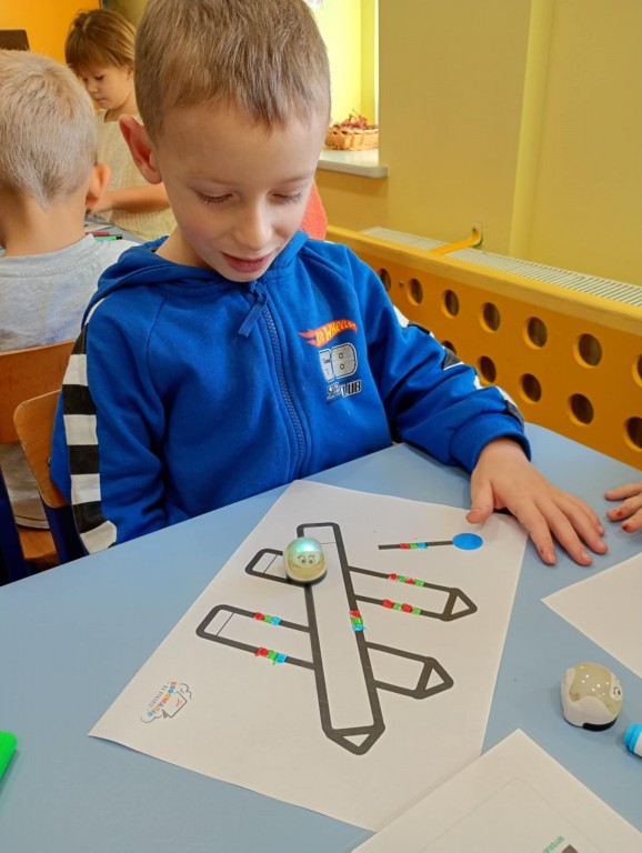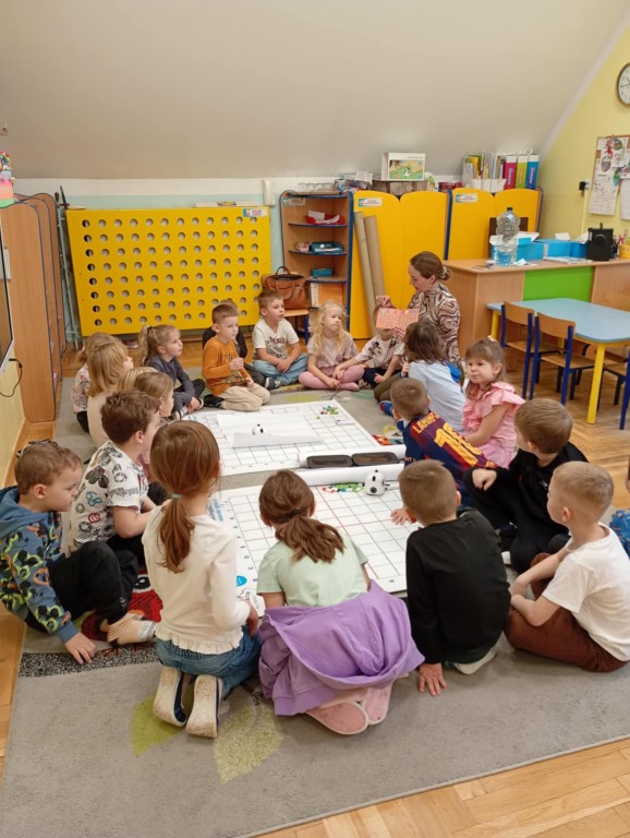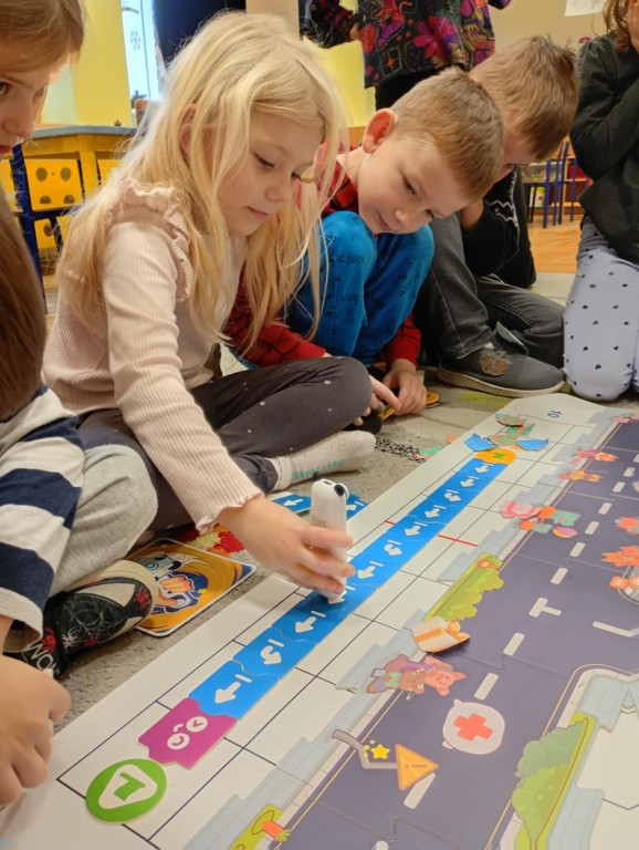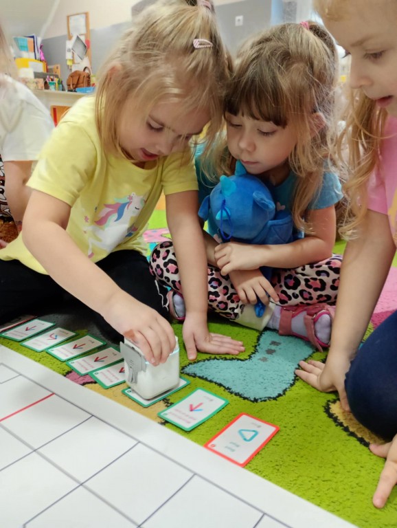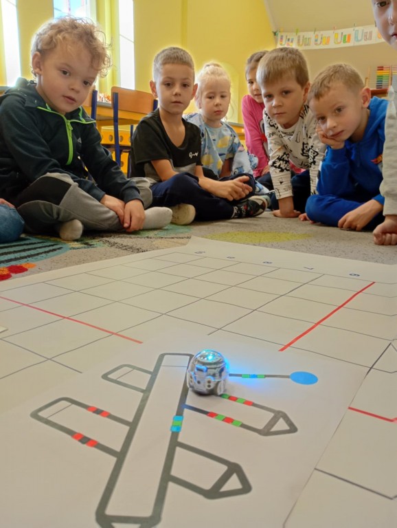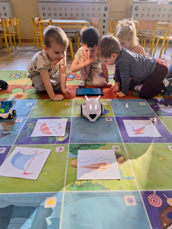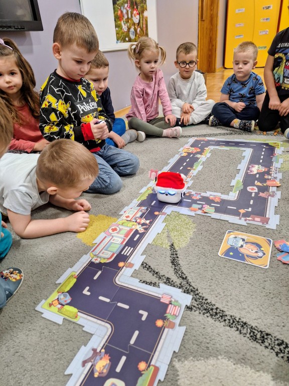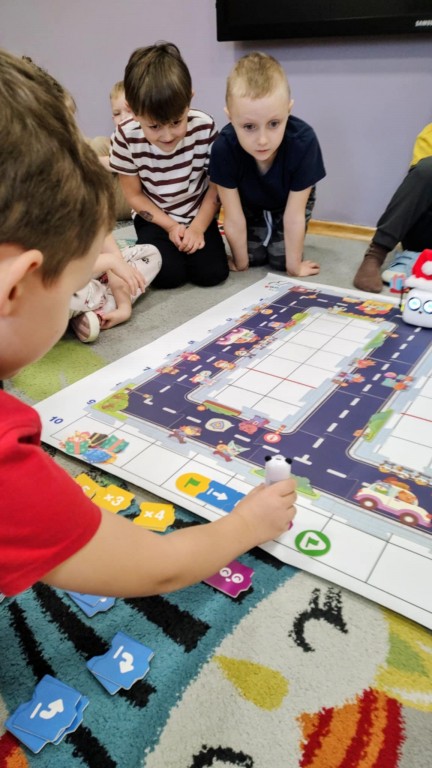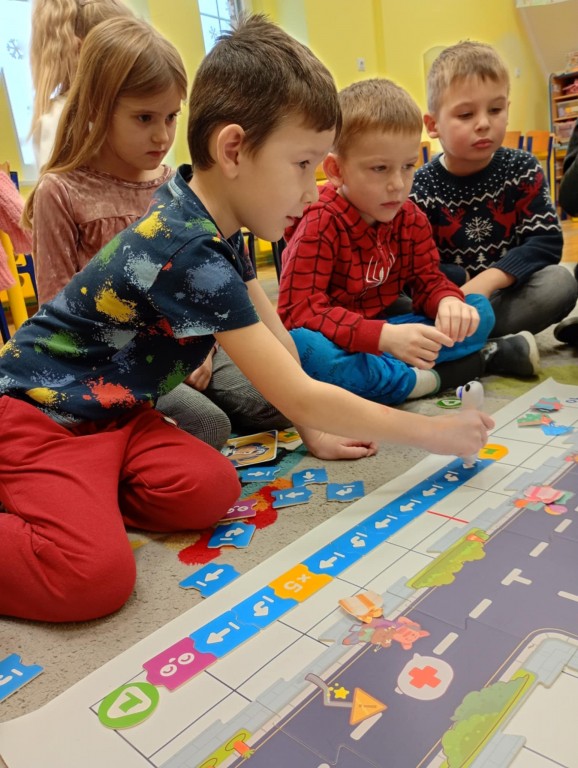 Na zajęciach dzieci wyruszyły w niezwykłą podróż. Spotkały na niej różne znaki drogowe, czerwone koła, żółte trójkąty czy niebieskie prostokąty, które jednocześnie przypominają o tym jak bezpiecznie poruszać się po drodze. Zaprogramowały również robota edukacyjnego Photona, aby mógł bezpiecznie przejść na drugą stronę ulicy :)