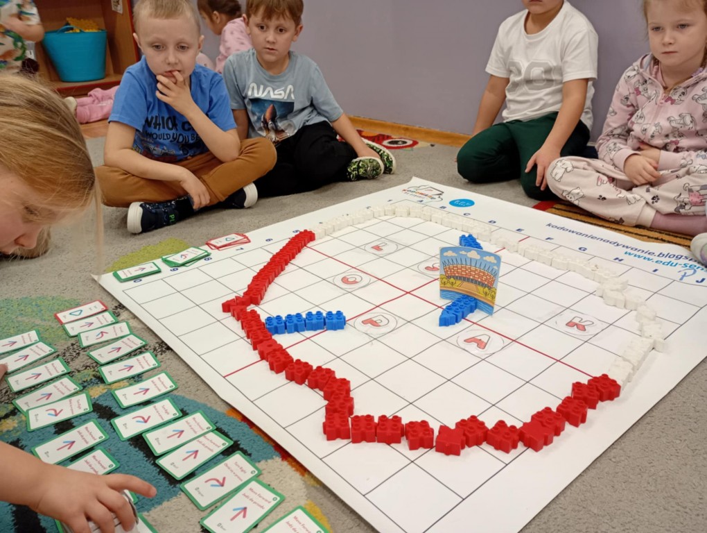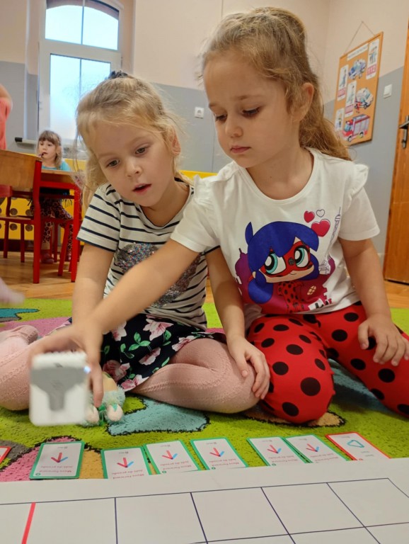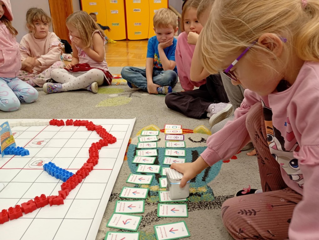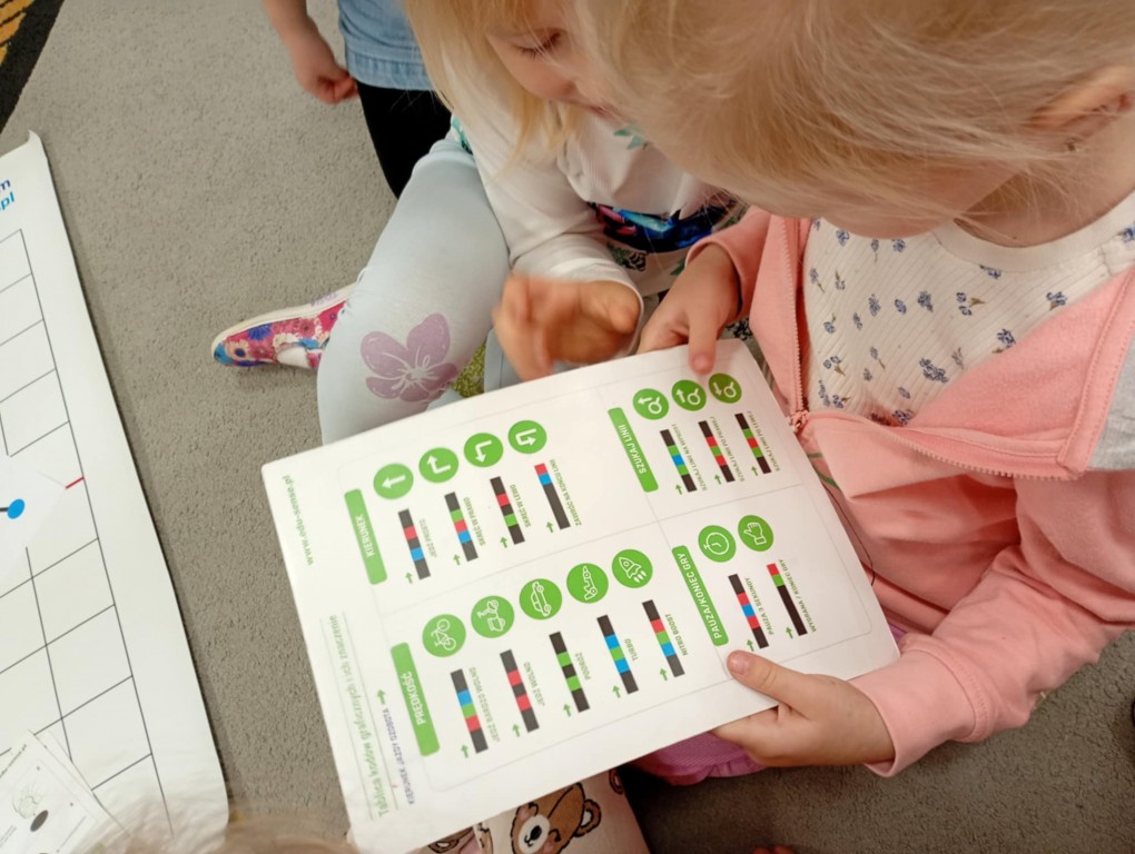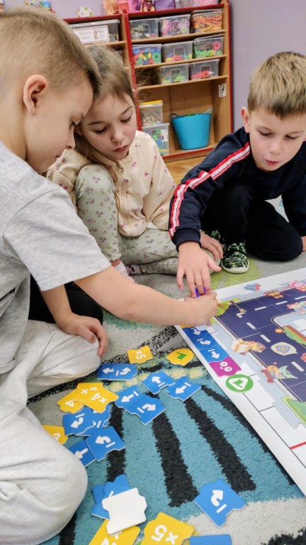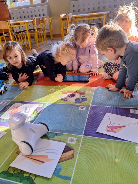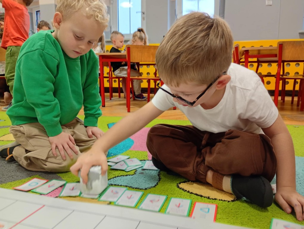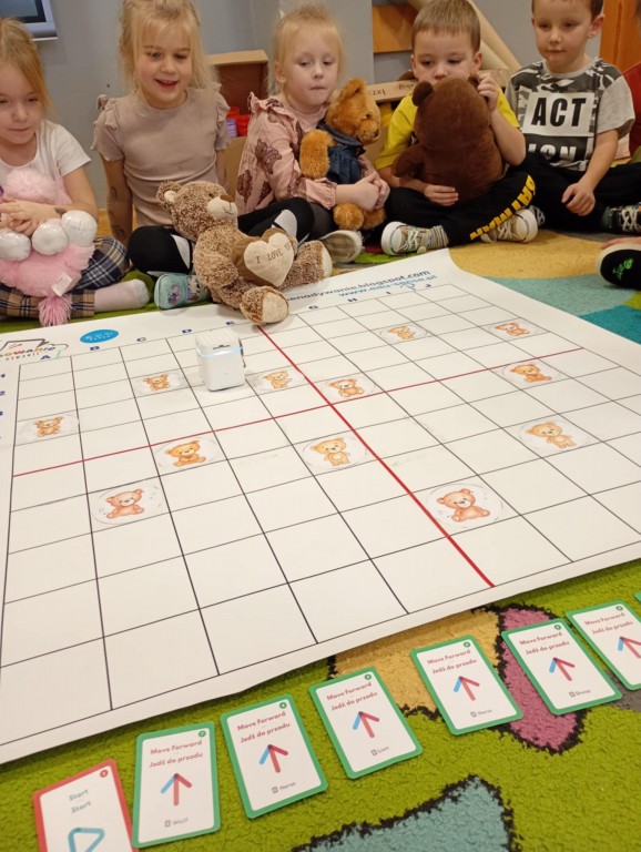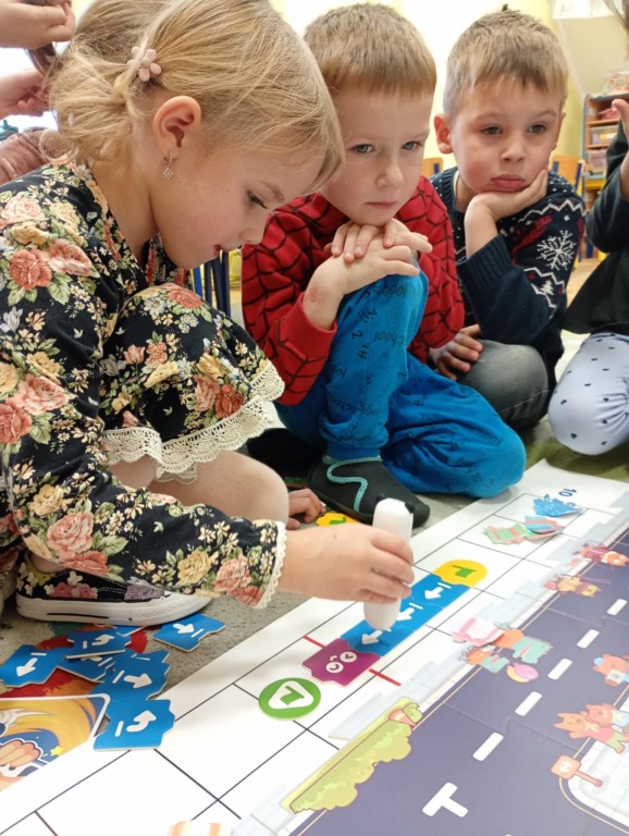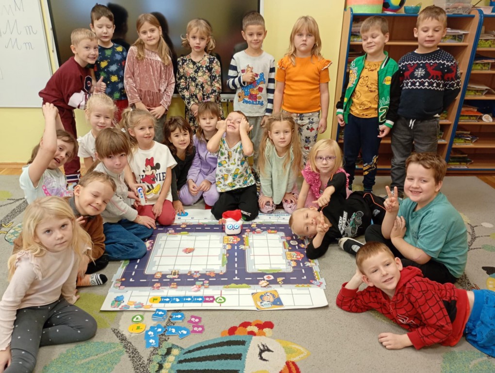 Na zajęciach dzieci wyruszyły w niezwykłą podróż. Spotkały na niej różne znaki drogowe, czerwone koła, żółte trójkąty czy niebieskie prostokąty, które jednocześnie przypominają o tym jak bezpiecznie poruszać się po drodze. Zaprogramowały również robota edukacyjnego Photona, aby mógł bezpiecznie przejść na drugą stronę ulicy :)