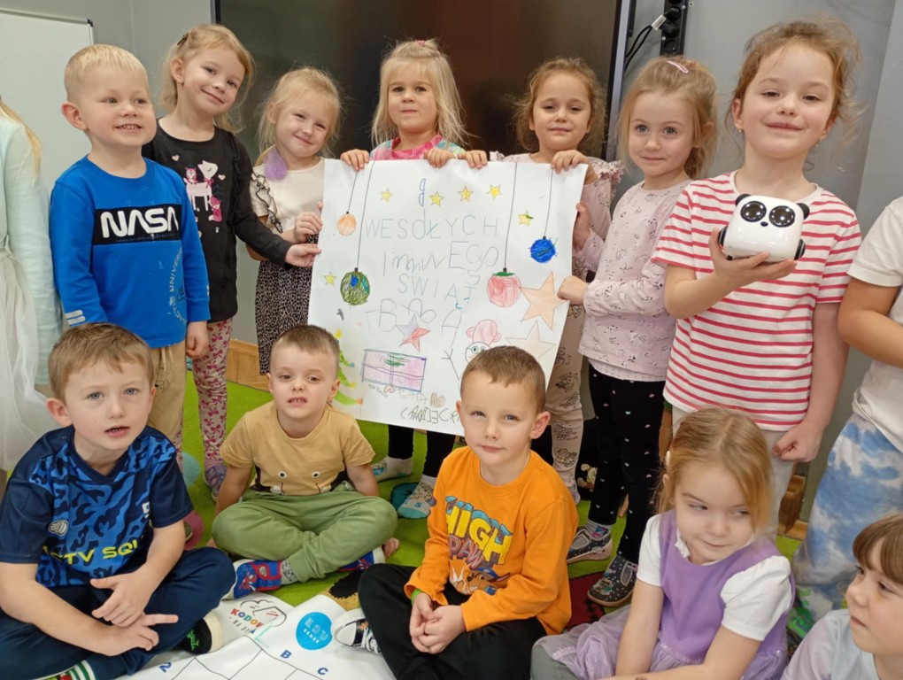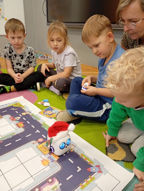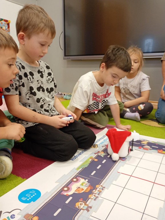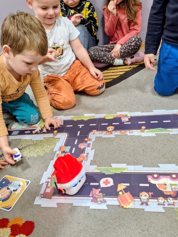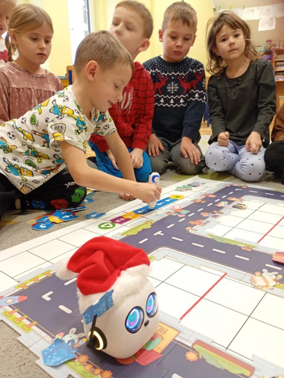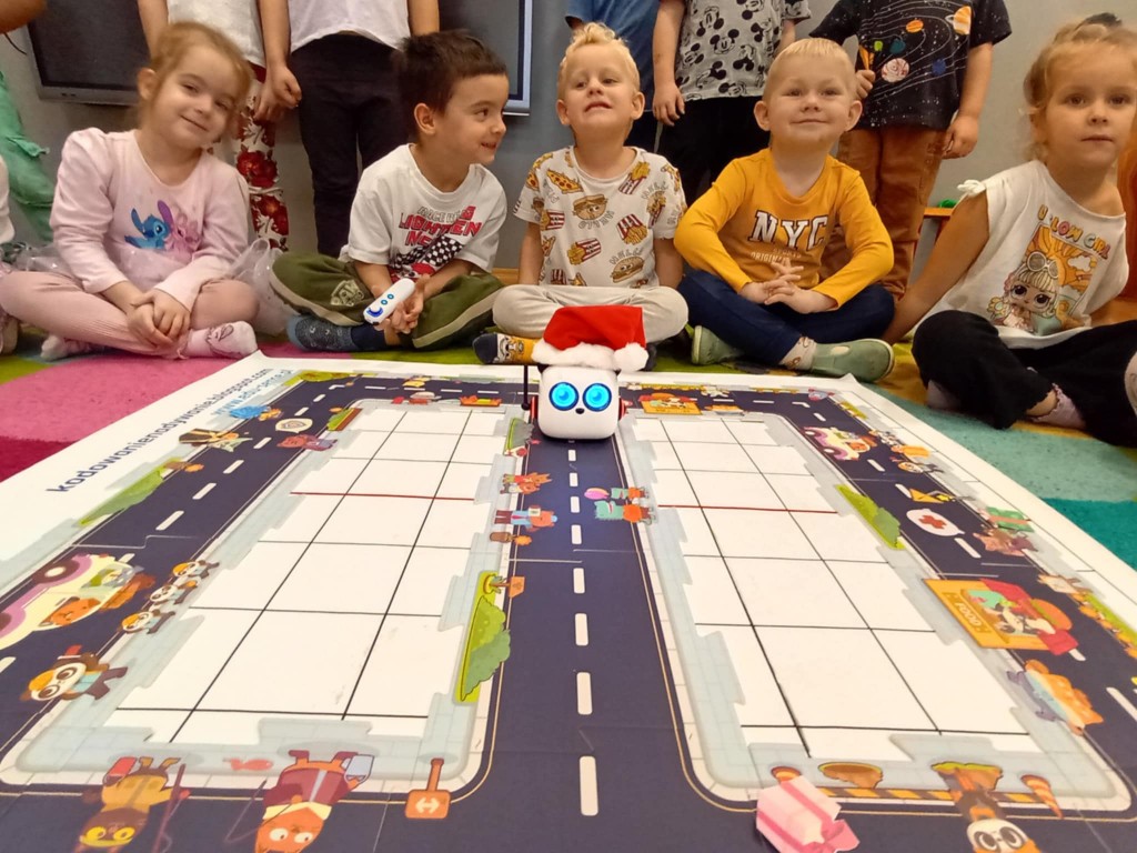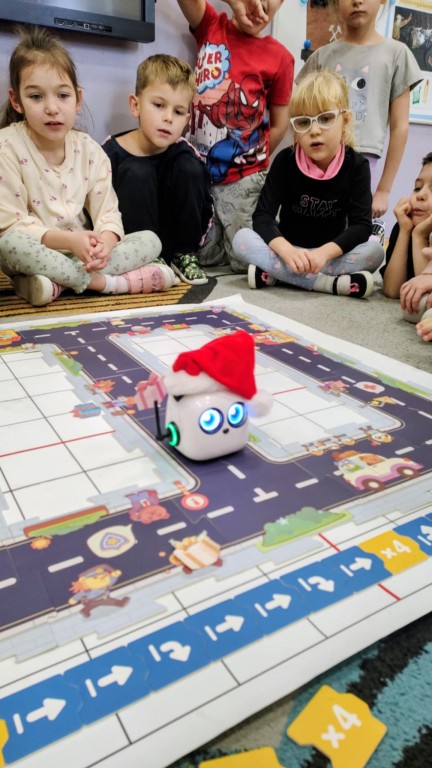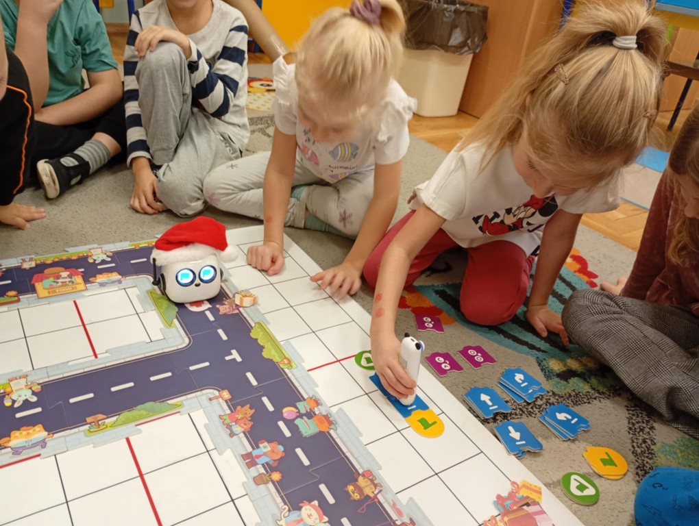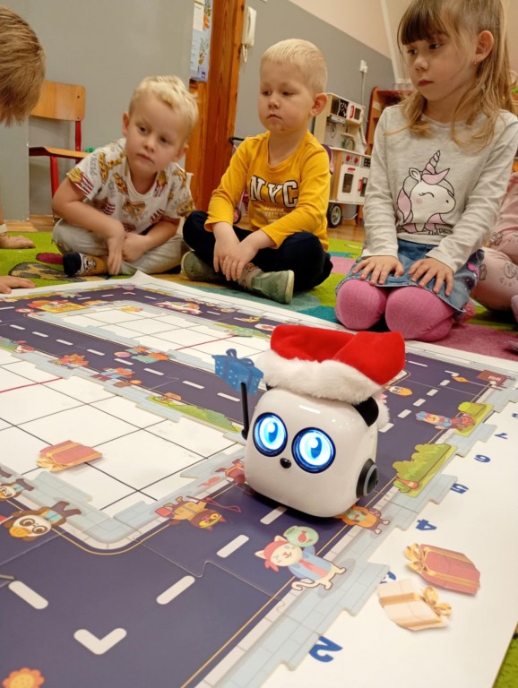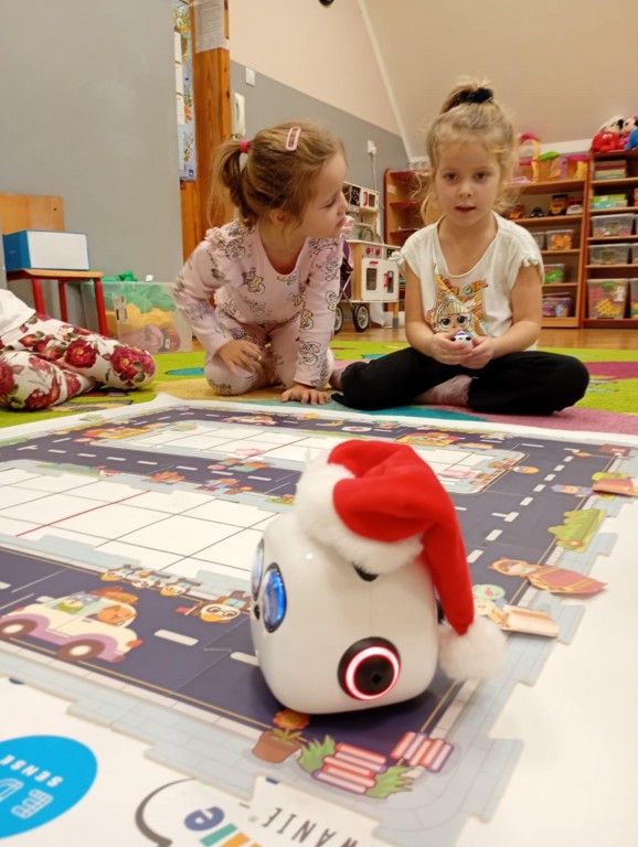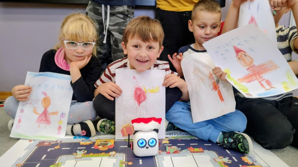 Podczas zajęć dzieci poznały nowego robota interaktywnego mTiny i uczyły się podstaw programowania poprzez świąteczną zabawę. Robot mTiny wcielił się w Mikołaja, który potrzebuje pomocy w przygotowaniach do świąt. Dzieci najpierw ułożyły mapę z puzzli, następnie korzystając z kart-kodów oraz kontrolera, zaplanowały trasę robota tak, aby Mikołaj mTiny dotarł do wszystkich dzieci. Zajęcia łączyły naukę z zabawą, a jednocześnie wprowadziły dzieci w świąteczny, radosny nastrój.