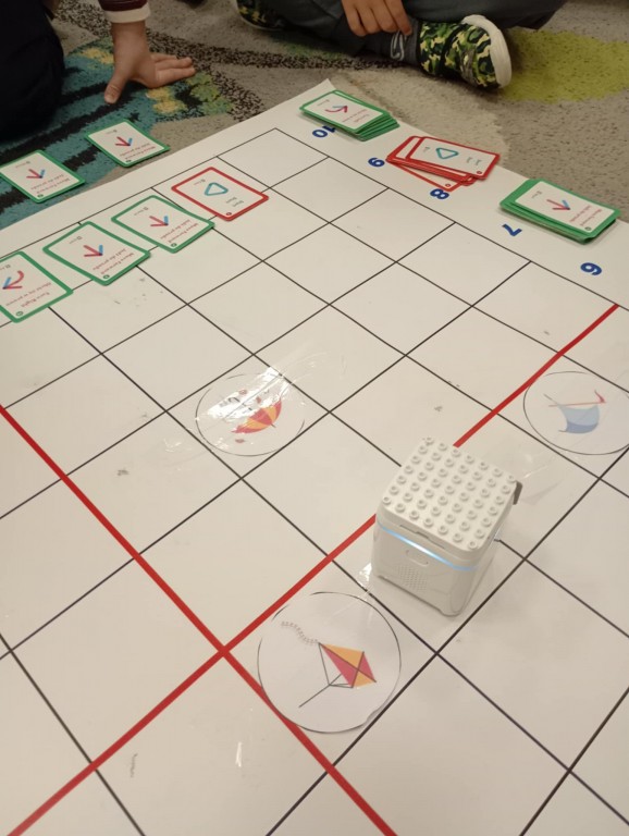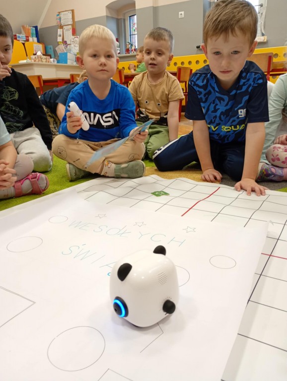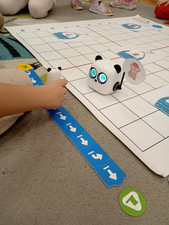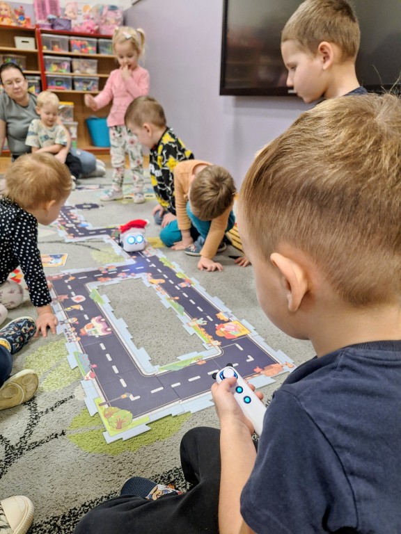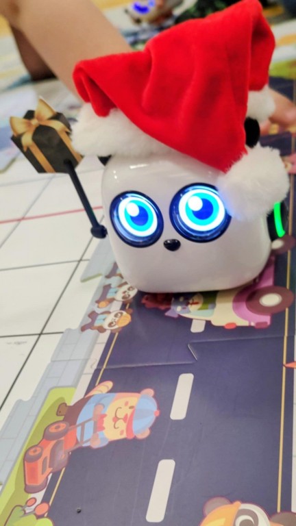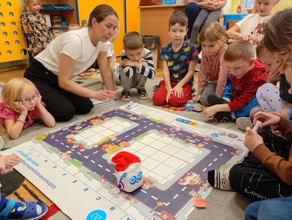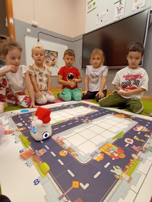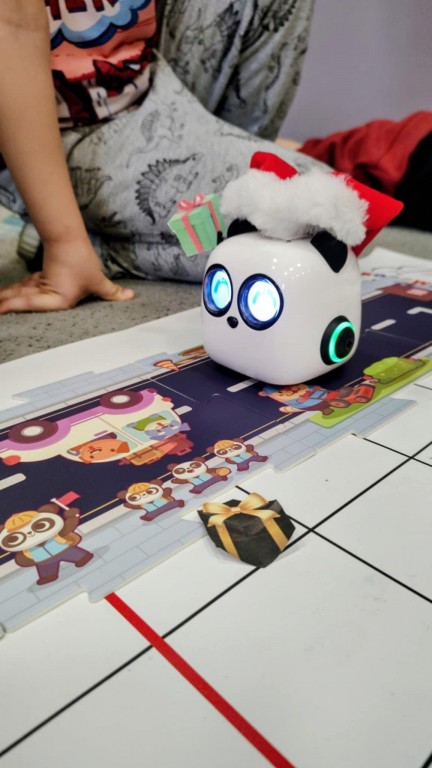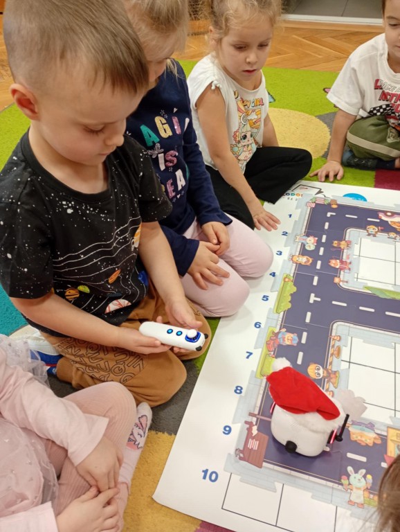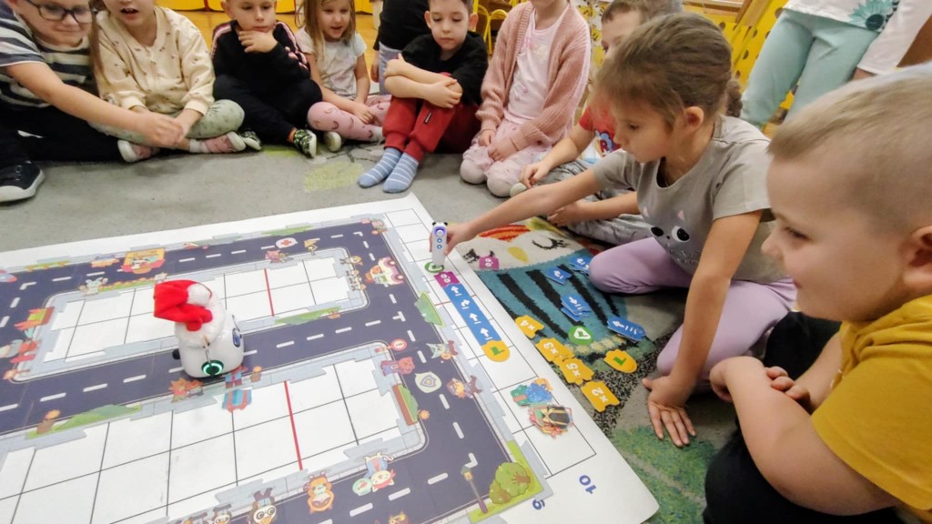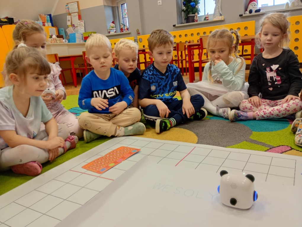 Podczas zajęć dzieci poznały nowego robota interaktywnego mTiny i uczyły się podstaw programowania poprzez świąteczną zabawę. Robot mTiny wcielił się w Mikołaja, który potrzebuje pomocy w przygotowaniach do świąt. Dzieci najpierw ułożyły mapę z puzzli, następnie korzystając z kart-kodów oraz kontrolera, zaplanowały trasę robota tak, aby Mikołaj mTiny dotarł do wszystkich dzieci. Zajęcia łączyły naukę z zabawą, a jednocześnie wprowadziły dzieci w świąteczny, radosny nastrój.