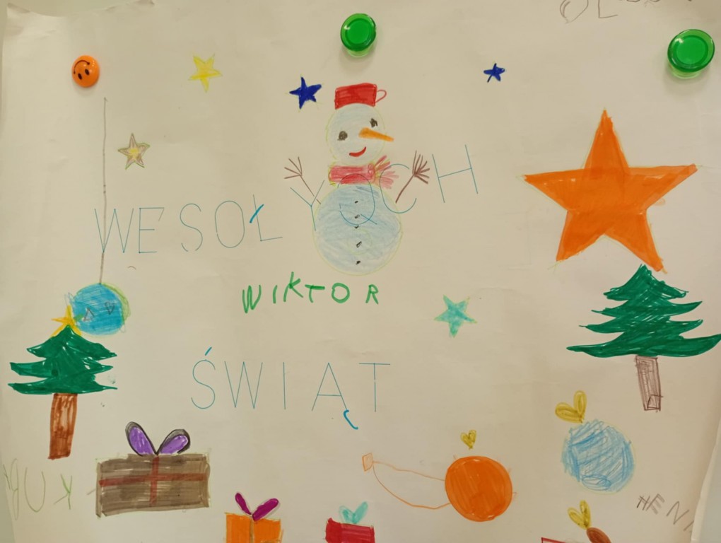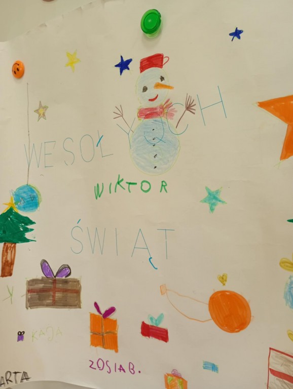 Przedszkolaki zaplanowały wzory, wybrały kolory, a następnie krok po kroku użyły program, dzięki którym robot napisał WESOŁYCH ŚWIĄT oraz narysował elementy świąteczne.