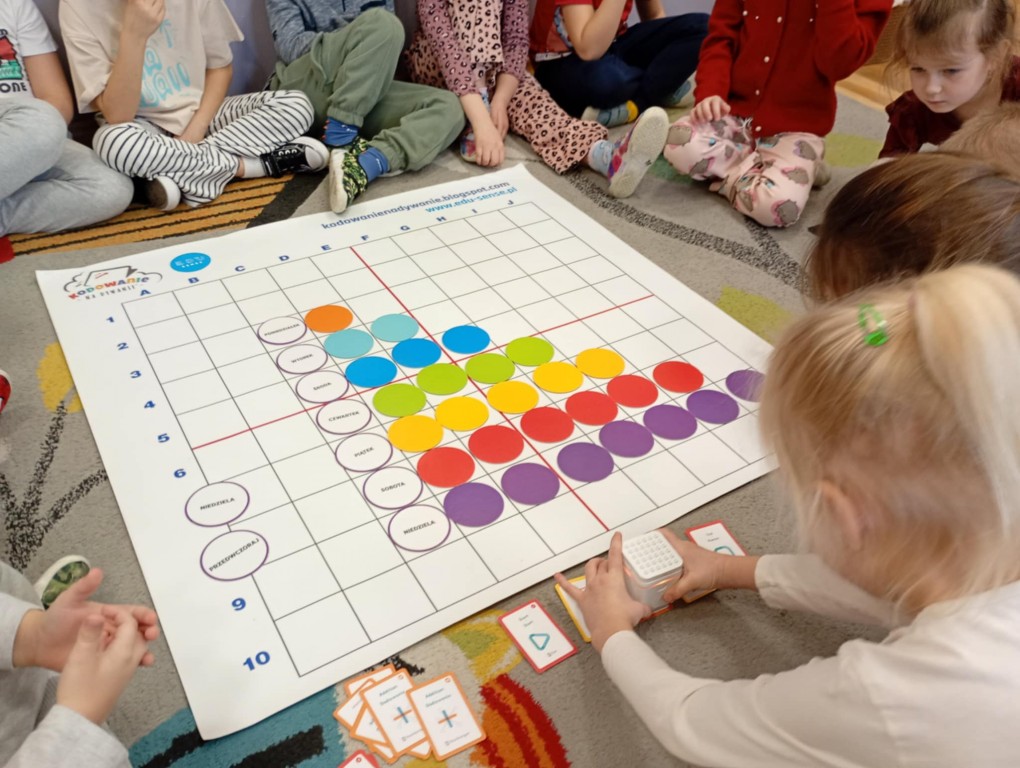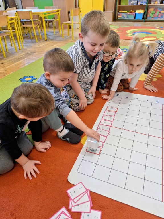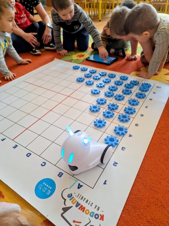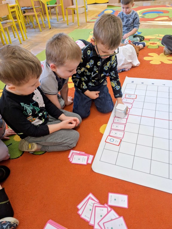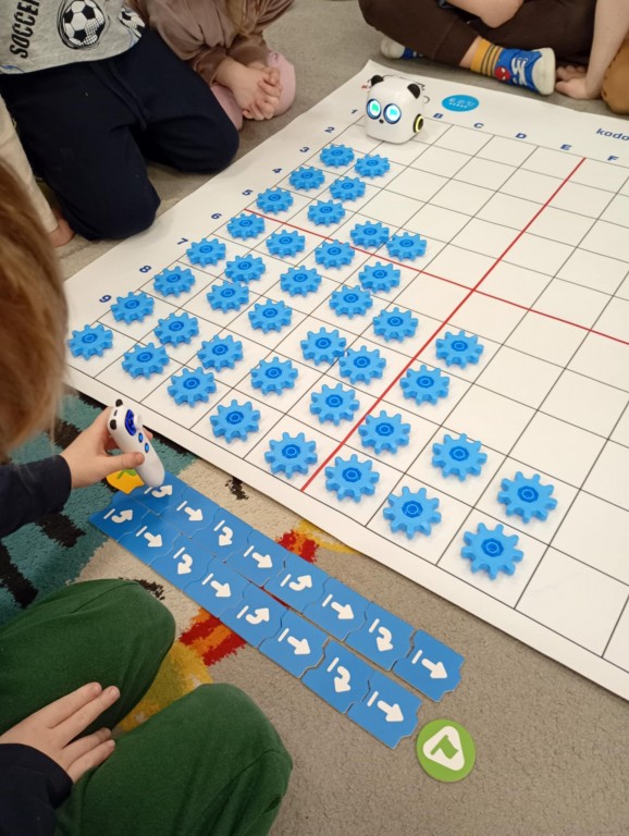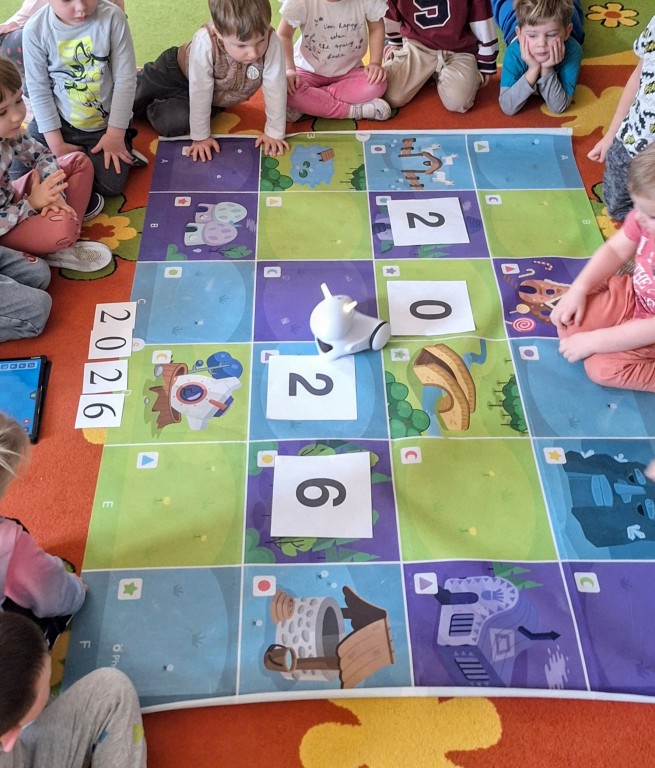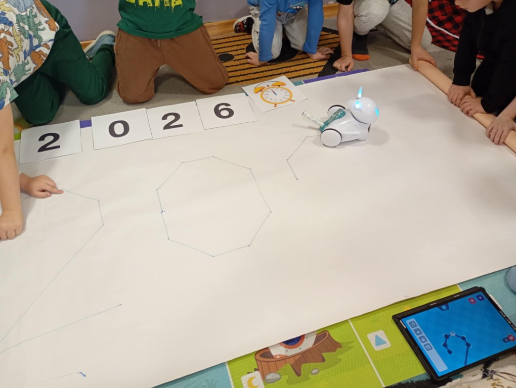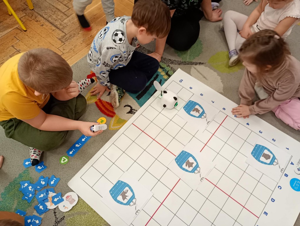 Zajęcia rozwijały umiejętności matematyczne, orientację przestrzenną, kompetencje cyfrowe oraz współpracę w grupie.