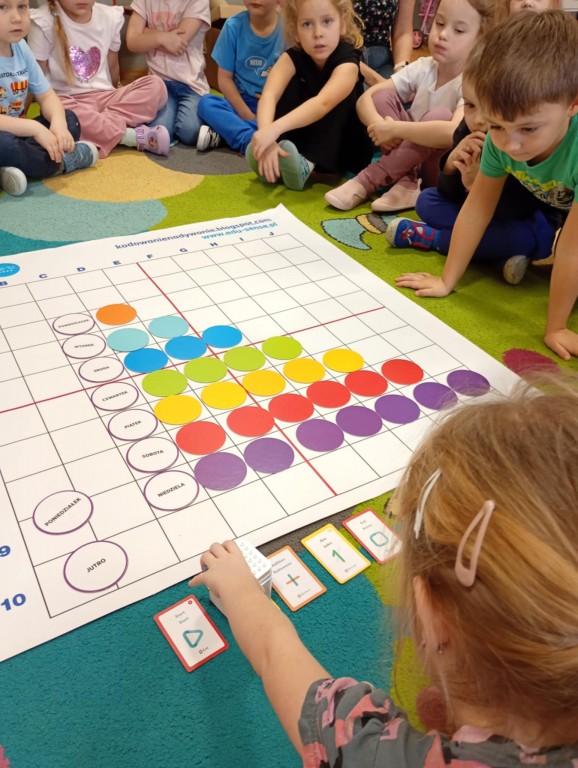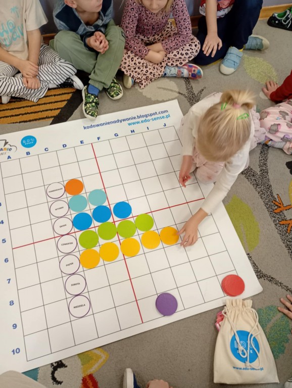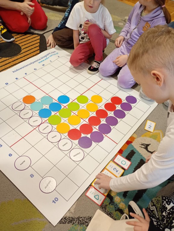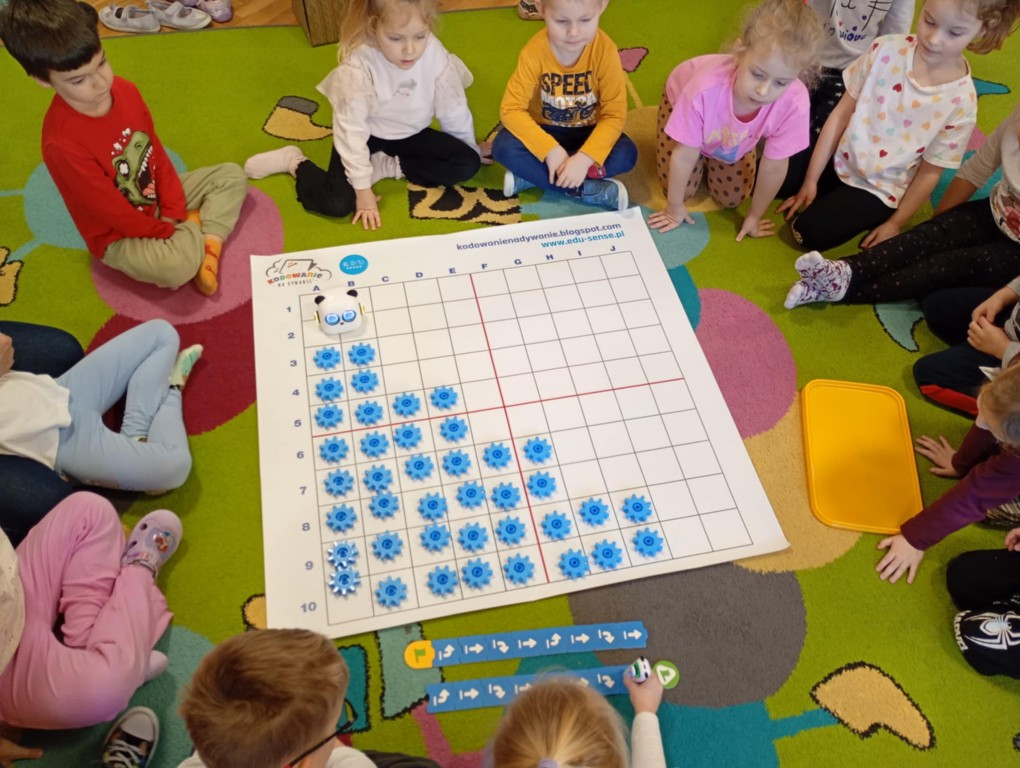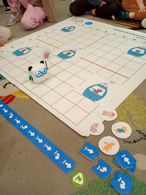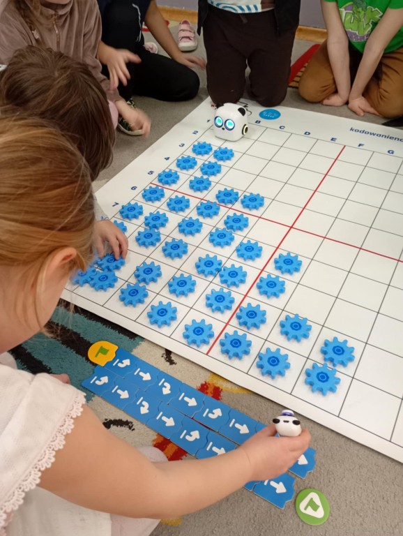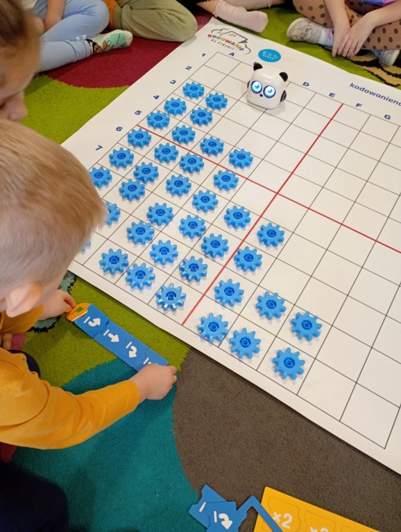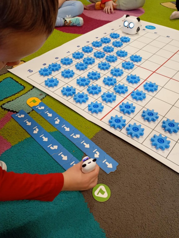Zajęcia rozwijały umiejętności matematyczne, orientację przestrzenną, kompetencje cyfrowe oraz współpracę w grupie.